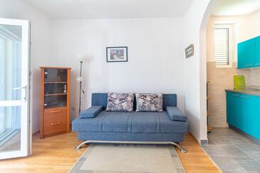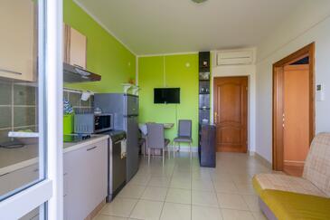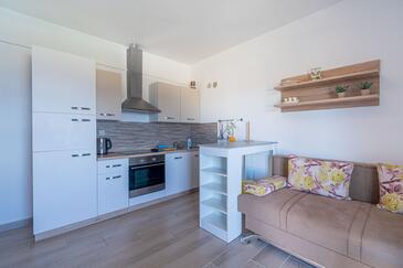 Ferienwohnung bietet Platz für 3 Gäste. Die Betten sind in Schlafzimmern, die es 1 gibt, und in Wohnzimmer, innerhalb einer Gesamtfläche von 27m2, angeordnet. Die Gäste haben eine eigene Terrasse zur Verfügung, auf der sie in warmen Sommernächten genießen können. Das Apartment bietet Meerblick. Es ist erlaubt, Speisen auf dem Gemeinschafts-Grill vorzubereiten. In der Unterkunftseinheit besteht die Möglichkeit des Mitbringens von Haustieren gegen Aufpreis.