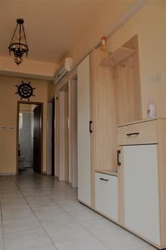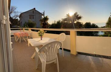 Ferienwohnung bietet Platz für 8 Gäste. Die Betten sind in Schlafzimmern, die es 3 gibt, innerhalb einer Gesamtfläche von 67m2, angeordnet. Die Gäste haben eine eigene Terrasse zur Verfügung, auf der sie in warmen Sommernächten genießen können. Das Apartment bietet Meerblick. Es ist erlaubt, Speisen auf dem Gemeinschafts-Grill vorzubereiten. In der Unterkunftseinheit besteht die Möglichkeit des Mitbringens von Haustieren gegen Aufpreis.