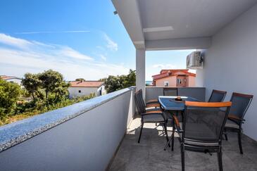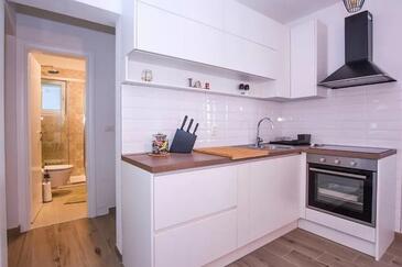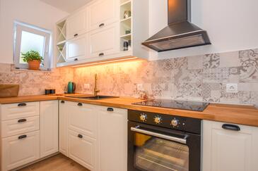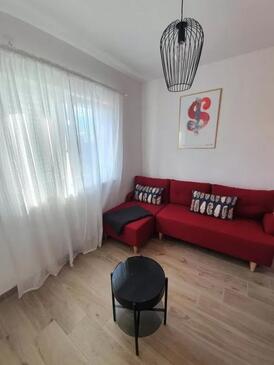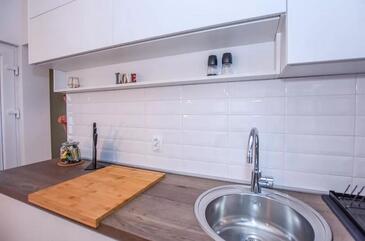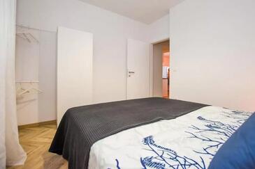 Ferienwohnung bietet Platz für 4 Gäste. Die Betten sind in Schlafzimmern, die es 2 gibt, innerhalb einer Gesamtfläche von 44m2, angeordnet. Die Gäste haben eine eigene Terrasse zur Verfügung, auf der sie in warmen Sommernächten genießen können. Das Apartment bietet Meerblick. Es ist erlaubt, Speisen auf dem Gemeinschafts-Grill vorzubereiten.