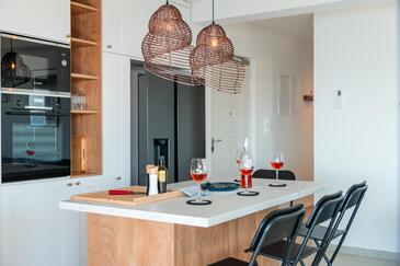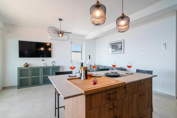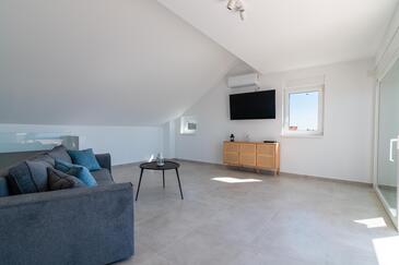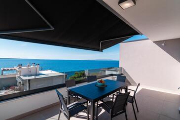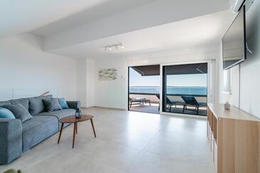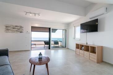 Ferienwohnung bietet Platz für 6 Gäste. Die Betten sind in Schlafzimmern, die es 2 gibt, und in Wohnzimmer, innerhalb einer Gesamtfläche von 129m2, angeordnet. Die Gäste haben eine eigene Terrasse zur Verfügung, auf der sie in warmen Sommernächten genießen können. Das Apartment bietet Meerblick.