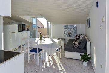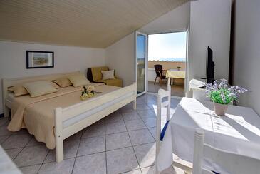 Ferienwohnung bietet Platz für 4 Gäste. Die Betten sind in Schlafzimmern, die es 1 gibt, und in Wohnzimmer, innerhalb einer Gesamtfläche von 23m2, angeordnet. Die Gäste haben einen eigenen Balkon zur Verfügung, auf der sie in warmen Sommernächten genießen können. Das Apartment bietet Meerblick. Es ist erlaubt, Speisen auf dem Gemeinschafts-Grill vorzubereiten. In der Unterkunftseinheit besteht die Möglichkeit des Mitbringens von Haustieren gegen Aufpreis.