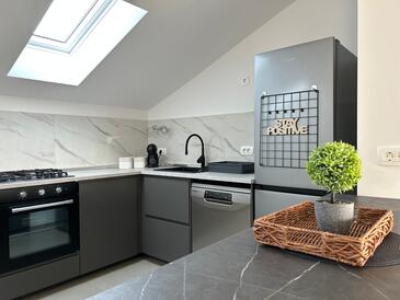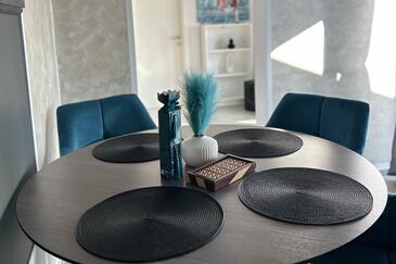 Ferienwohnung bietet Platz für 5 Gäste. Die Betten sind in Schlafzimmern, die es 2 gibt, und in Wohnzimmer, innerhalb einer Gesamtfläche von 68m2, angeordnet. Die Gäste haben eine eigene Terrasse zur Verfügung, auf der sie in warmen Sommernächten genießen können. Das Apartment bietet Meerblick. In der gebuchten Unterkunftseinheit zahlt man am Ort ein Depositum ( der Preis ist an der Internetseite angeführt ).