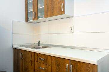 Ferienwohnung bietet Platz für 4 Gäste. Die Betten sind in Schlafzimmern, die es 2 gibt, innerhalb einer Gesamtfläche von 35m2, angeordnet. Die Gäste haben eine eigene Terrasse zur Verfügung, auf der sie in warmen Sommernächten genießen können. Das Apartment bietet Meerblick. Es ist erlaubt, Speisen auf dem Gemeinschafts-Grill vorzubereiten.