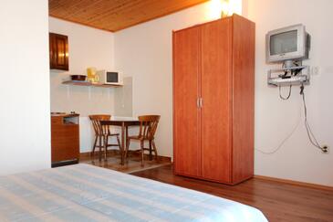 Ferienwohnung bietet Platz für 4 Gäste. Die Betten sind in Schlafzimmern, die es 1 gibt, und in Wohnzimmer, innerhalb einer Gesamtfläche von 40m2, angeordnet. Die Gäste haben eine eigene Terrasse zur Verfügung, auf der sie in warmen Sommernächten genießen können. Das Apartment bietet Meerblick. Es ist erlaubt, Speisen auf dem Gemeinschafts-Grill vorzubereiten. In der Unterkunftseinheit besteht die Möglichkeit des Mitbringens von Haustieren, und die Dienstleistung ist im Preis der Unterkunft enthalten.