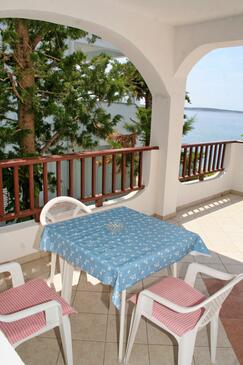 Ferienwohnung bietet Platz für 4 Gäste. Die Betten sind in Schlafzimmern, die es 1 gibt, und in Wohnzimmer, innerhalb einer Gesamtfläche von 45m2, angeordnet. Die Gäste haben eine eigene Terrasse zur Verfügung, auf der sie in warmen Sommernächten genießen können. Das Apartment bietet Meerblick. Es ist erlaubt, Speisen auf dem Gemeinschafts-Grill vorzubereiten.