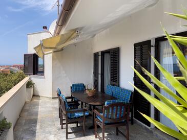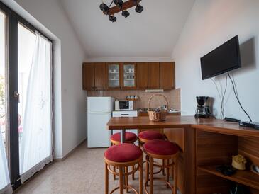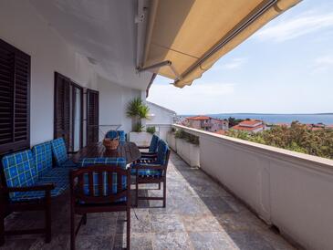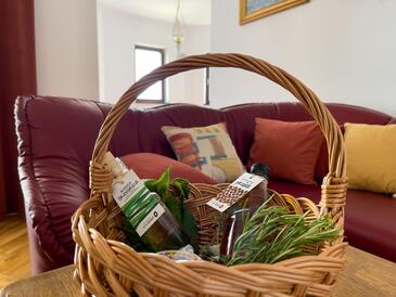 Ferienwohnung bietet Platz für 6 Gäste. Die Betten sind in Schlafzimmern, die es 3 gibt, und in Wohnzimmer, innerhalb einer Gesamtfläche von 76m2, angeordnet. Die Gäste haben eine eigene Terrasse zur Verfügung, auf der sie in warmen Sommernächten genießen können. Das Apartment bietet Meerblick. Es ist erlaubt, Speisen auf dem Gemeinschafts-Grill vorzubereiten. In der Unterkunftseinheit besteht die Möglichkeit des Mitbringens von Haustieren gegen Aufpreis. In der gebuchten Unterkunftseinheit zahlt man am Ort ein Depositum ( der Preis ist an der Internetseite angeführt ).