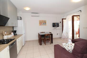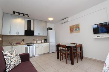 Ferienwohnung bietet Platz für 4 Gäste. Die Betten sind in Schlafzimmern, die es 1 gibt, und in Wohnzimmer, innerhalb einer Gesamtfläche von 37m2, angeordnet. Die Gäste haben eine eigene Terrasse zur Verfügung, auf der sie in warmen Sommernächten genießen können. Das Apartment bietet Meerblick. Es ist erlaubt, Speisen auf dem Gemeinschafts-Grill vorzubereiten.