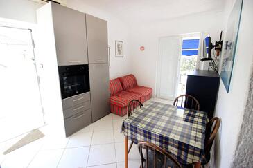 Ferienwohnung bietet Platz für 4 Gäste. Die Betten sind in Schlafzimmern, die es 1 gibt, und in Wohnzimmer, innerhalb einer Gesamtfläche von 26m2, angeordnet. Die Gäste haben eine eigene Terrasse zur Verfügung, auf der sie in warmen Sommernächten genießen können. Das Apartment bietet Meerblick. Es ist erlaubt, Speisen auf dem Gemeinschafts-Grill vorzubereiten. In der Unterkunftseinheit besteht die Möglichkeit des Mitbringens von Haustieren gegen Aufpreis.