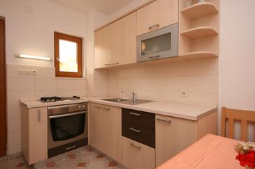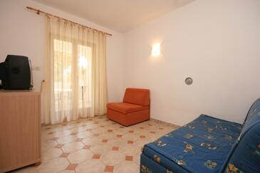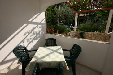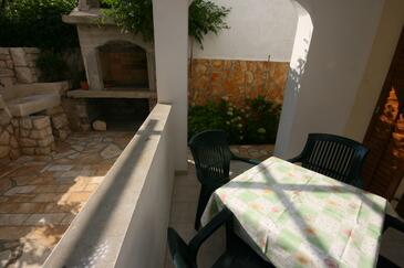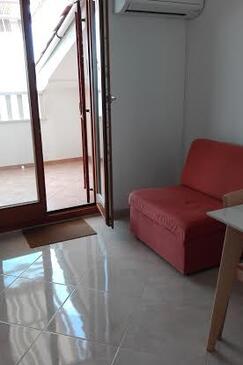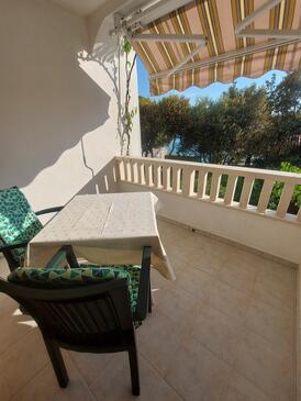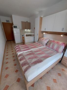 Ferienwohnung bietet Platz für 4 Gäste. Die Betten sind in Schlafzimmern, die es 2 gibt, innerhalb einer Gesamtfläche von 45m2, angeordnet. Die Gäste haben eine eigene Terrasse zur Verfügung, auf der sie in warmen Sommernächten genießen können. Das Apartment bietet Meerblick. Es ist erlaubt, Speisen auf dem Gemeinschafts-Grill vorzubereiten.