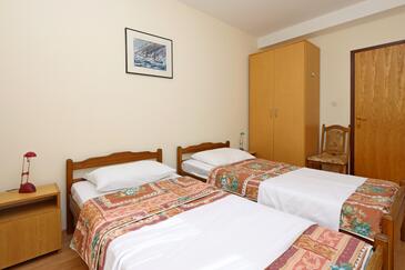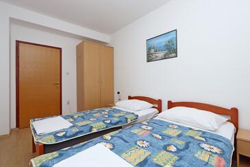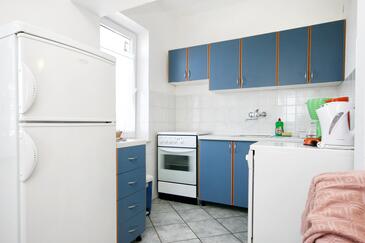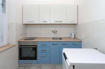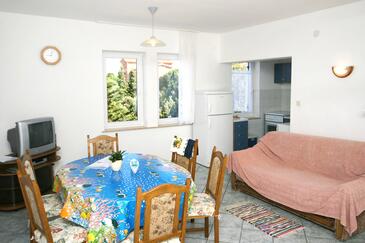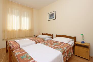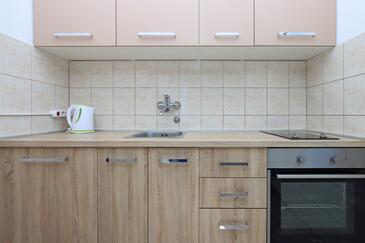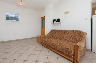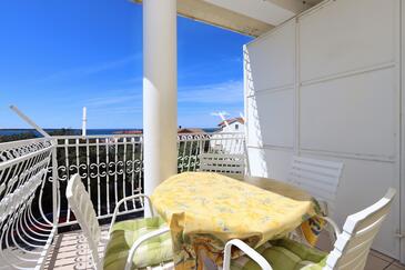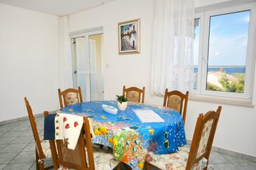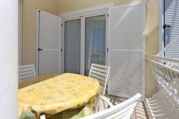 Ferienwohnung bietet Platz für 5 Gäste. Die Betten sind in Schlafzimmern, die es 2 gibt, und in Wohnzimmer, innerhalb einer Gesamtfläche von 64m2, angeordnet. Die Gäste haben eine eigene Terrasse zur Verfügung, auf der sie in warmen Sommernächten genießen können. Das Apartment bietet Meerblick. Es ist erlaubt, Speisen auf dem Gemeinschafts-Grill vorzubereiten.