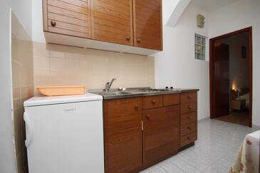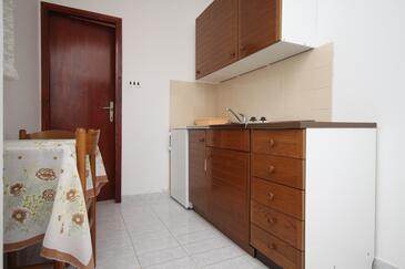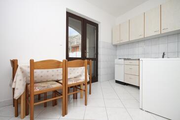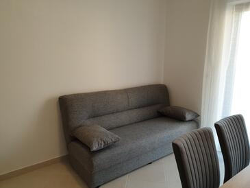 Ferienwohnung bietet Platz für 4 Gäste. Die Betten sind in Schlafzimmern, die es 1 gibt, innerhalb einer Gesamtfläche von 28m2, angeordnet. Die Gäste haben eine eigene Terrasse zur Verfügung, auf der sie in warmen Sommernächten genießen können. Das Apartment bietet Meerblick. Es ist erlaubt, Speisen auf dem Gemeinschafts-Grill vorzubereiten.