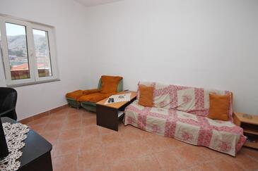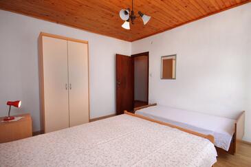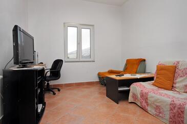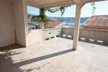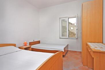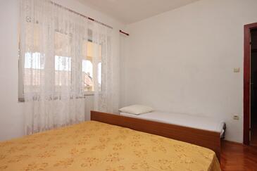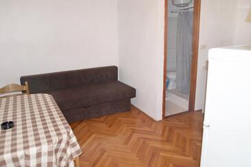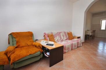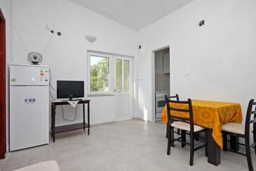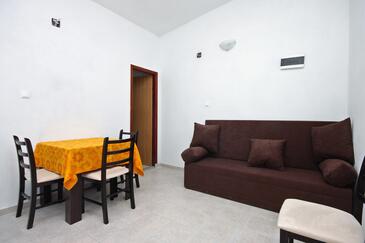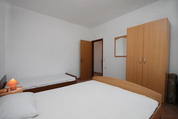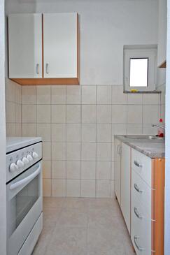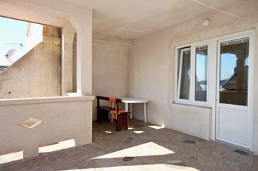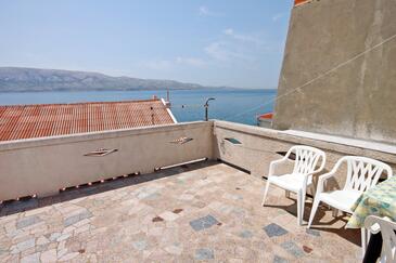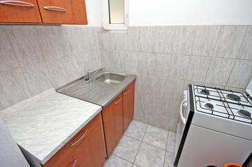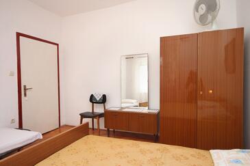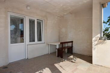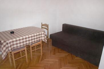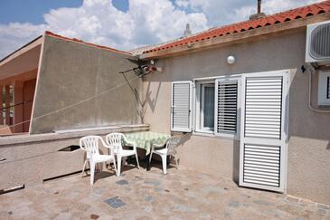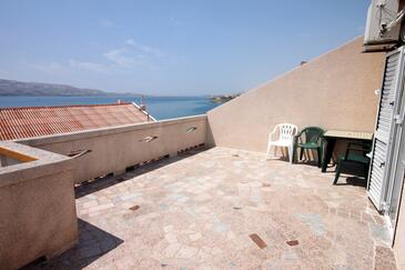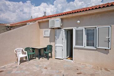 Ferienwohnung bietet Platz für 6 Gäste. Die Betten sind in Schlafzimmern, die es 2 gibt, innerhalb einer Gesamtfläche von 44m2, angeordnet. Die Gäste haben eine eigene Terrasse zur Verfügung, auf der sie in warmen Sommernächten genießen können. Das Apartment bietet Meerblick. Es ist erlaubt, Speisen auf dem Gemeinschafts-Grill vorzubereiten.