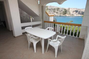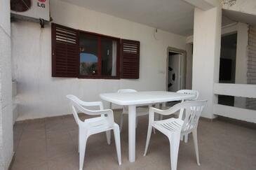 Ferienwohnung bietet Platz für 4 Gäste. Die Betten sind in Schlafzimmern, die es 2 gibt, innerhalb einer Gesamtfläche von 50m2, angeordnet. Die Gäste haben eine eigene Terrasse zur Verfügung, auf der sie in warmen Sommernächten genießen können. Das Apartment bietet Meerblick. Es ist erlaubt, Speisen auf dem Gemeinschafts-Grill vorzubereiten.