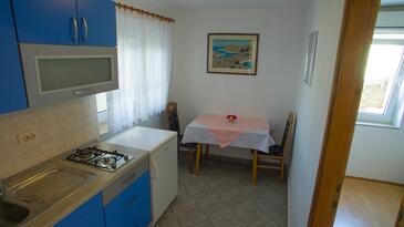 Ferienwohnung bietet Platz für 4 Gäste. Die Betten sind in Schlafzimmern, die es 2 gibt, innerhalb einer Gesamtfläche von 48m2, angeordnet. Die Gäste haben eine eigene Terrasse zur Verfügung, auf der sie in warmen Sommernächten genießen können. Das Apartment bietet Meerblick. Es ist erlaubt, Speisen auf dem Gemeinschafts-Grill vorzubereiten. Während ihres Aufenthalts können Gäste das gemeinsam zur Nutzung stehende Schwimmbad benutzen. In der Unterkunftseinheit besteht die Möglichkeit des Mitbringens von Haustieren gegen Aufpreis.