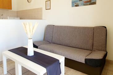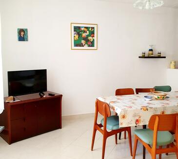 Ferienwohnung bietet Platz für 8 Gäste. Die Betten sind in Schlafzimmern, die es 3 gibt, innerhalb einer Gesamtfläche von 88m2, angeordnet. Die Gäste haben eine eigene Terrasse zur Verfügung, auf der sie in warmen Sommernächten genießen können. Das Apartment bietet Meerblick. In der Unterkunftseinheit besteht die Möglichkeit des Mitbringens von Haustieren gegen Aufpreis.