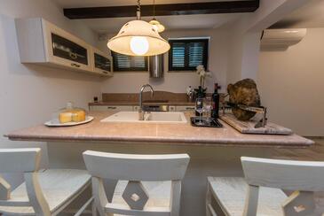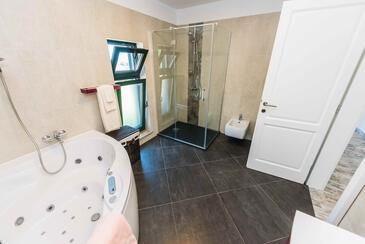 Haus bietet Platz für 10 Gäste. Die Betten sind in Schlafzimmern, die es 5 gibt, innerhalb einer Gesamtfläche von 175m2, angeordnet. Die Gäste haben eine eigene Terrasse zur Verfügung, auf der sie in warmen Sommernächten genießen können. Das Haus bietet Meerblick. Für vollen Genuss und Entspannung gibt es einen privaten Grill für Gäste dieser Unterkunft. Während ihres Aufenthalts können sich Gäste im privaten Schwimmbad entspannen. In der Unterkunftseinheit besteht die Möglichkeit des Mitbringens von Haustieren gegen Aufpreis. In der gebuchten Unterkunftseinheit zahlt man am Ort ein Depositum ( der Preis ist an der Internetseite angeführt ).