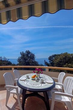 Ferienwohnung bietet Platz für 6 Gäste. Die Betten sind in Schlafzimmern, die es 2 gibt, innerhalb einer Gesamtfläche von 53m2, angeordnet. Die Gäste haben eine eigene Terrasse zur Verfügung, auf der sie in warmen Sommernächten genießen können. Das Apartment bietet Meerblick. Es ist erlaubt, Speisen auf dem Gemeinschafts-Grill vorzubereiten.