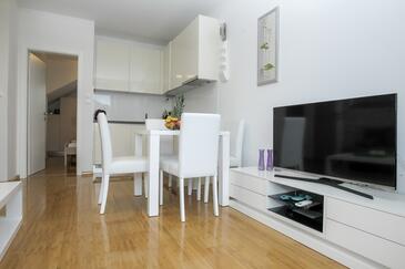 Ferienwohnung bietet Platz für 6 Gäste. Die Betten sind in Schlafzimmern, die es 2 gibt, und in Wohnzimmer, innerhalb einer Gesamtfläche von 55m2, angeordnet. Die Gäste haben eine eigene Terrasse zur Verfügung, auf der sie in warmen Sommernächten genießen können. Für vollen Genuss und Entspannung gibt es einen privaten Grill für Gäste dieser Unterkunft. In der Unterkunftseinheit besteht die Möglichkeit des Mitbringens von Haustieren gegen Aufpreis. In der gebuchten Unterkunftseinheit zahlt man am Ort ein Depositum ( der Preis ist an der Internetseite angeführt ).