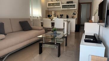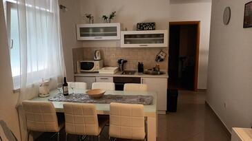 Ferienwohnung bietet Platz für 4 Gäste. Die Betten sind in Schlafzimmern, die es 2 gibt, innerhalb einer Gesamtfläche von 50m2, angeordnet. Die Gäste haben eine eigene Terrasse zur Verfügung, auf der sie in warmen Sommernächten genießen können. Für vollen Genuss und Entspannung gibt es einen privaten Grill für Gäste dieser Unterkunft.