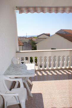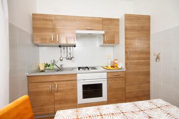 Ferienwohnung bietet Platz für 6 Gäste. Die Betten sind in Schlafzimmern, die es 2 gibt, und in Wohnzimmer, innerhalb einer Gesamtfläche von 66m2, angeordnet. Die Gäste haben eine eigene Terrasse zur Verfügung, auf der sie in warmen Sommernächten genießen können. Das Apartment bietet Meerblick. Es ist erlaubt, Speisen auf dem Gemeinschafts-Grill vorzubereiten.
