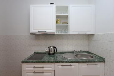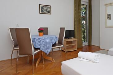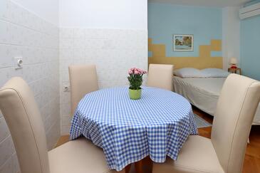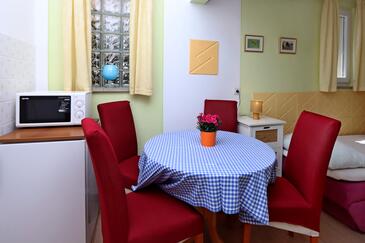 Ferienwohnung bietet Platz für 4 Gäste. Die Betten sind in Schlafzimmern, die es 1 gibt, und in Wohnzimmer, innerhalb einer Gesamtfläche von 38m2, angeordnet. Die Gäste haben eine eigene Terrasse zur Verfügung, auf der sie in warmen Sommernächten genießen können. Es ist erlaubt, Speisen auf dem Gemeinschafts-Grill vorzubereiten. Während ihres Aufenthalts können Gäste das gemeinsam zur Nutzung stehende Schwimmbad benutzen. In der gebuchten Unterkunftseinheit zahlt man am Ort ein Depositum ( der Preis ist an der Internetseite angeführt ).