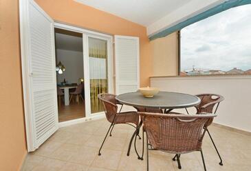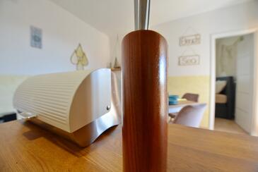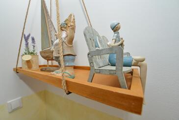 Ferienwohnung bietet Platz für 4 Gäste. Die Betten sind in Schlafzimmern, die es 2 gibt, innerhalb einer Gesamtfläche von 40m2, angeordnet. Die Gäste haben einen eigenen Balkon zur Verfügung, auf der sie in warmen Sommernächten genießen können. Das Apartment bietet Meerblick.