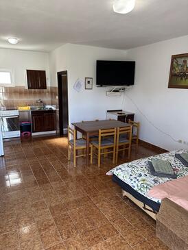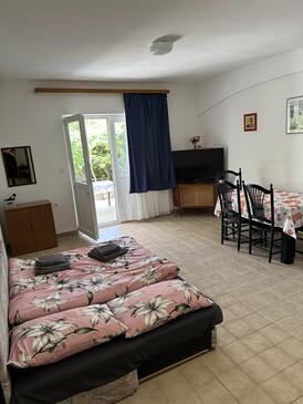 Ferienwohnung bietet Platz für 4 Gäste. Die Betten sind in Schlafzimmern, die es 1 gibt, und in Wohnzimmer, innerhalb einer Gesamtfläche von 43m2, angeordnet. Die Gäste haben eine eigene Terrasse zur Verfügung, auf der sie in warmen Sommernächten genießen können. Es ist erlaubt, Speisen auf dem Gemeinschafts-Grill vorzubereiten.
