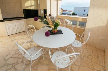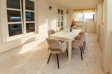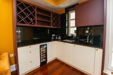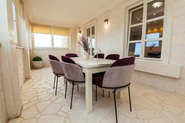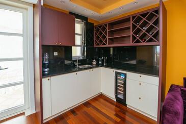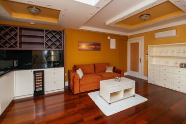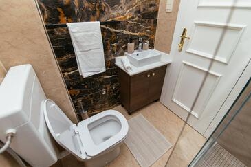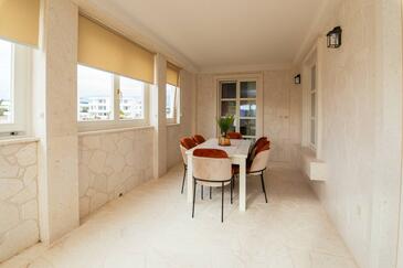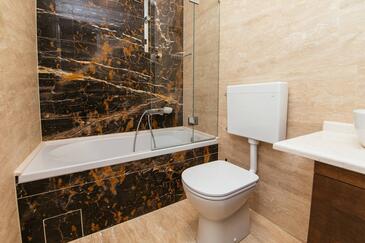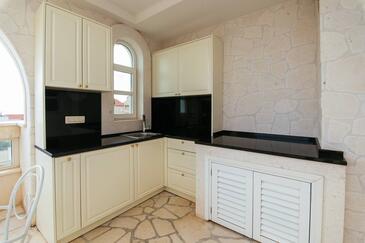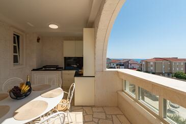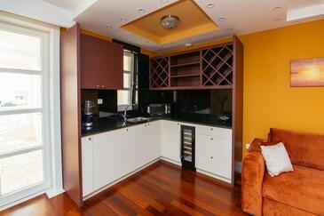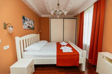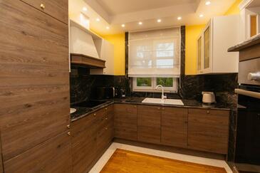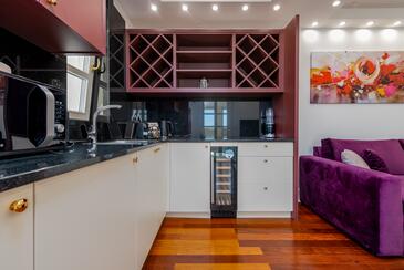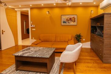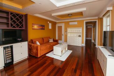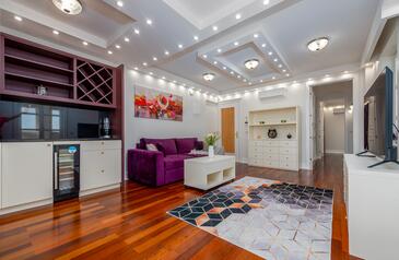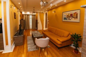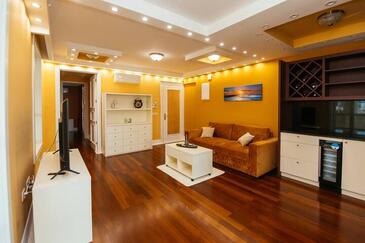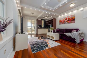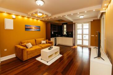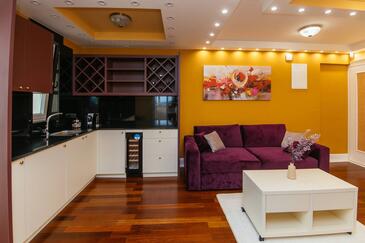 Ferienwohnung bietet Platz für 5 Gäste. Die Betten sind in Schlafzimmern, die es 2 gibt, und in Wohnzimmer, innerhalb einer Gesamtfläche von 69m2, angeordnet. Die Gäste haben einen eigenen Balkon zur Verfügung, auf der sie in warmen Sommernächten genießen können. Es ist erlaubt, Speisen auf dem Gemeinschafts-Grill vorzubereiten. Während ihres Aufenthalts können Gäste das gemeinsam zur Nutzung stehende Schwimmbad benutzen. In der Unterkunftseinheit besteht die Möglichkeit des Mitbringens von Haustieren gegen Aufpreis. In der gebuchten Unterkunftseinheit zahlt man am Ort ein Depositum ( der Preis ist an der Internetseite angeführt ).