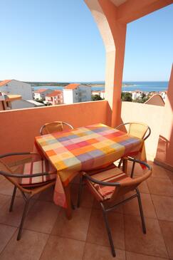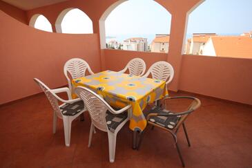 Ferienwohnung bietet Platz für 4 Gäste. Die Betten sind in Schlafzimmern, die es 2 gibt, innerhalb einer Gesamtfläche von 51m2, angeordnet. Die Gäste haben eine eigene Terrasse zur Verfügung, auf der sie in warmen Sommernächten genießen können. Das Apartment bietet Meerblick. Es ist erlaubt, Speisen auf dem Gemeinschafts-Grill vorzubereiten. In der Unterkunftseinheit besteht die Möglichkeit des Mitbringens von Haustieren gegen Aufpreis.