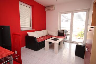 Ferienwohnung bietet Platz für 4 Gäste. Die Betten sind in Schlafzimmern, die es 2 gibt, innerhalb einer Gesamtfläche von 42m2, angeordnet. Die Gäste haben eine eigene Terrasse zur Verfügung, auf der sie in warmen Sommernächten genießen können. Das Apartment bietet Meerblick. In der gebuchten Unterkunftseinheit zahlt man am Ort ein Depositum ( der Preis ist an der Internetseite angeführt ).