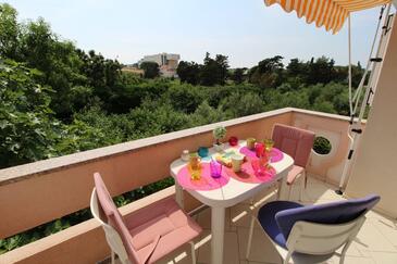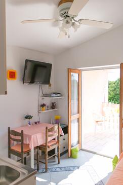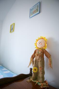 Ferienwohnung bietet Platz für 5 Gäste. Die Betten sind in Schlafzimmern, die es 2 gibt, und in Esszimmer, innerhalb einer Gesamtfläche von 42m2, angeordnet. Die Gäste haben eine eigene Terrasse zur Verfügung, auf der sie in warmen Sommernächten genießen können. Es ist erlaubt, Speisen auf dem Gemeinschafts-Grill vorzubereiten. In der Unterkunftseinheit besteht die Möglichkeit des Mitbringens von Haustieren gegen Aufpreis. In der gebuchten Unterkunftseinheit zahlt man am Ort ein Depositum ( der Preis ist an der Internetseite angeführt ).