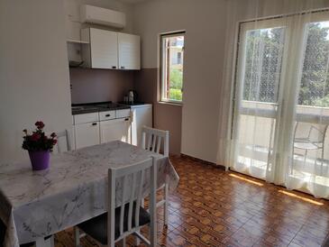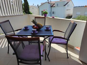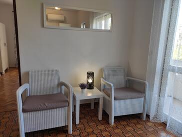 Ferienwohnung bietet Platz für 6 Gäste. Die Betten sind in Schlafzimmern, die es 3 gibt, innerhalb einer Gesamtfläche von 64m2, angeordnet. Die Gäste haben eine eigene Terrasse zur Verfügung, auf der sie in warmen Sommernächten genießen können. Das Apartment bietet Meerblick. Es ist erlaubt, Speisen auf dem Gemeinschafts-Grill vorzubereiten.