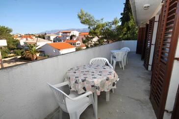 Ferienwohnung bietet Platz für 8 Gäste. Die Betten sind in Schlafzimmern, die es 3 gibt, innerhalb einer Gesamtfläche von 71m2, angeordnet. Die Gäste haben einen eigenen Balkon zur Verfügung, auf der sie in warmen Sommernächten genießen können. Es ist erlaubt, Speisen auf dem Gemeinschafts-Grill vorzubereiten.