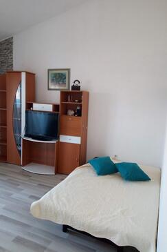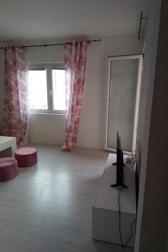 Ferienwohnung bietet Platz für 6 Gäste. Die Betten sind in Schlafzimmern, die es 2 gibt, und in Wohnzimmer, innerhalb einer Gesamtfläche von 64m2, angeordnet. Die Gäste haben einen eigenen Balkon zur Verfügung, auf der sie in warmen Sommernächten genießen können. Das Apartment bietet Meerblick. Es ist erlaubt, Speisen auf dem Gemeinschafts-Grill vorzubereiten.