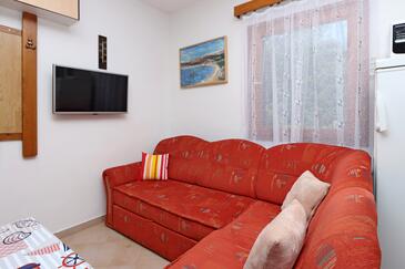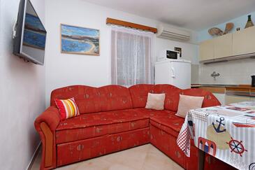 Ferienwohnung bietet Platz für 4 Gäste. Die Betten sind in Schlafzimmern, die es 1 gibt, und in Esszimmer, innerhalb einer Gesamtfläche von 25m2, angeordnet. Die Gäste haben eine eigene Terrasse zur Verfügung, auf der sie in warmen Sommernächten genießen können. Das Apartment bietet Meerblick. Es ist erlaubt, Speisen auf dem Gemeinschafts-Grill vorzubereiten.