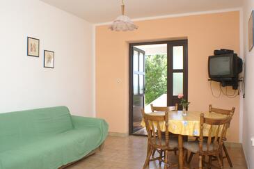 Ferienwohnung bietet Platz für 4 Gäste. Die Betten sind in Schlafzimmern, die es 2 gibt, innerhalb einer Gesamtfläche von 41m2, angeordnet. Die Gäste haben eine eigene Terrasse zur Verfügung, auf der sie in warmen Sommernächten genießen können. Das Apartment bietet Meerblick. Es ist erlaubt, Speisen auf dem Gemeinschafts-Grill vorzubereiten.