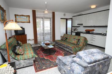 Ferienwohnung bietet Platz für 8 Gäste. Die Betten sind in Schlafzimmern, die es 3 gibt, und in Wohnzimmer, innerhalb einer Gesamtfläche von 79m2, angeordnet. Die Gäste haben eine eigene Terrasse zur Verfügung, auf der sie in warmen Sommernächten genießen können. Das Apartment bietet Meerblick. Es ist erlaubt, Speisen auf dem Gemeinschafts-Grill vorzubereiten. In der Unterkunftseinheit besteht die Möglichkeit des Mitbringens von Haustieren gegen Aufpreis.