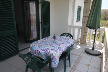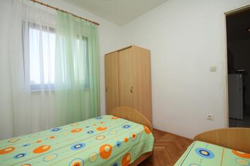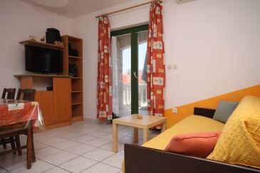 Ferienwohnung bietet Platz für 6 Gäste. Die Betten sind in Schlafzimmern, die es 2 gibt, und in Wohnzimmer, innerhalb einer Gesamtfläche von 43m2, angeordnet. Die Gäste haben eine eigene Terrasse zur Verfügung, auf der sie in warmen Sommernächten genießen können. Das Apartment bietet Meerblick. Es ist erlaubt, Speisen auf dem Gemeinschafts-Grill vorzubereiten.