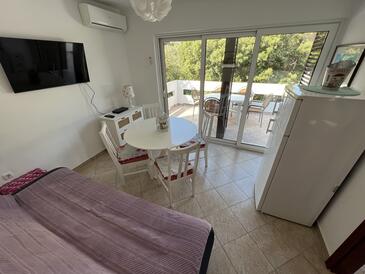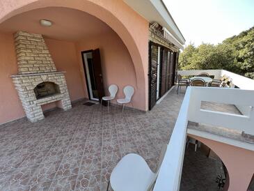 Haus bietet Platz für 8 Gäste. Die Betten sind in Schlafzimmern, die es 3 gibt, und in Wohnzimmer, innerhalb einer Gesamtfläche von 96m2, angeordnet. Die Gäste haben eine eigene Terrasse zur Verfügung, auf der sie in warmen Sommernächten genießen können. Das Haus bietet Meerblick. Es ist erlaubt, Speisen auf dem Gemeinschafts-Grill vorzubereiten. In der Unterkunftseinheit besteht die Möglichkeit des Mitbringens von Haustieren gegen Aufpreis.