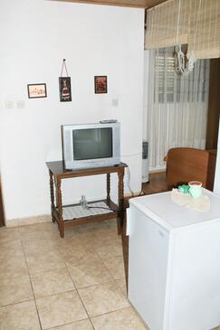 Studio bietet Platz für 2 Gäste. Die Betten sind in Schlafzimmern, die es 1 gibt, innerhalb einer Gesamtfläche von 25m2, angeordnet. Die Gäste haben eine eigene Terrasse zur Verfügung, auf der sie in warmen Sommernächten genießen können. Das Studio-Apartment bietet Meerblick. Es ist erlaubt, Speisen auf dem Gemeinschafts-Grill vorzubereiten.