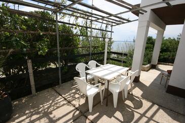 Ferienwohnung bietet Platz für 4 Gäste. Die Betten sind in Schlafzimmern, die es 1 gibt, innerhalb einer Gesamtfläche von 34m2, angeordnet. Die Gäste haben eine eigene Terrasse zur Verfügung, auf der sie in warmen Sommernächten genießen können. Das Apartment bietet Meerblick. Es ist erlaubt, Speisen auf dem Gemeinschafts-Grill vorzubereiten.