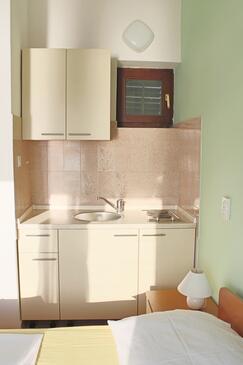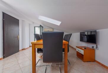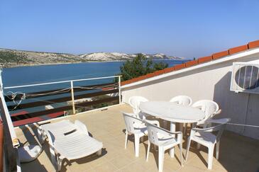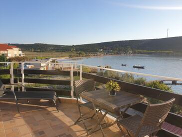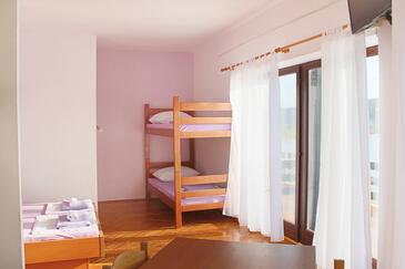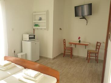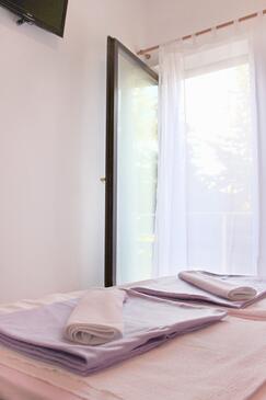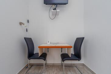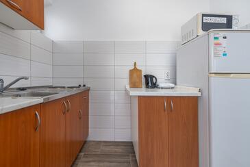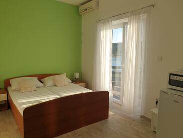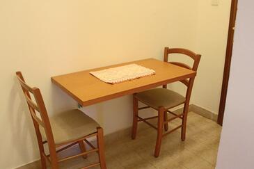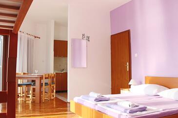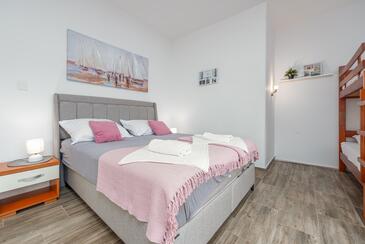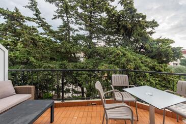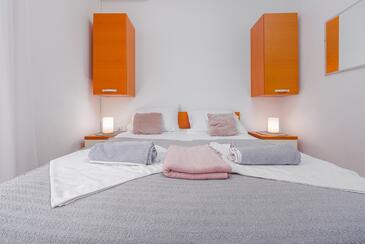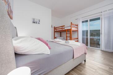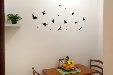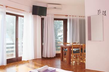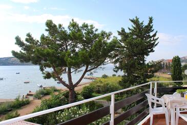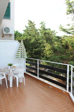 Ferienwohnung bietet Platz für 6 Gäste. Die Betten sind in Schlafzimmern, die es 2 gibt, und in Esszimmer, innerhalb einer Gesamtfläche von 60m2, angeordnet. Die Gäste haben eine eigene Terrasse zur Verfügung, auf der sie in warmen Sommernächten genießen können. Das Apartment bietet Meerblick. Es ist erlaubt, Speisen auf dem Gemeinschafts-Grill vorzubereiten.