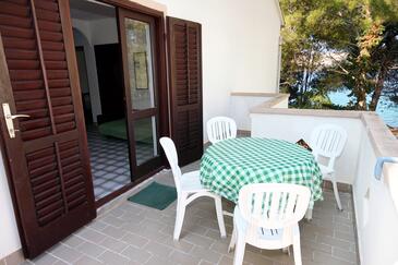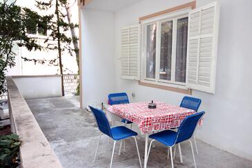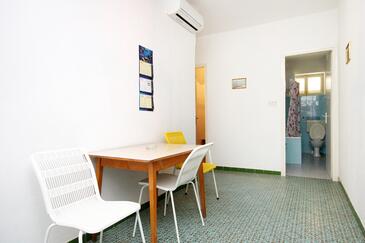 Ferienwohnung bietet Platz für 5 Gäste. Die Betten sind in Schlafzimmern, die es 2 gibt, innerhalb einer Gesamtfläche von 52m2, angeordnet. Die Gäste haben eine eigene Terrasse zur Verfügung, auf der sie in warmen Sommernächten genießen können. Das Apartment bietet Meerblick. Es ist erlaubt, Speisen auf dem Gemeinschafts-Grill vorzubereiten. In der Unterkunftseinheit besteht die Möglichkeit des Mitbringens von Haustieren gegen Aufpreis.