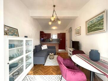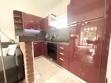 Ferienwohnung bietet Platz für 4 Gäste. Die Betten sind in Schlafzimmern, die es 1 gibt, und in Wohnzimmer, innerhalb einer Gesamtfläche von 33m2, angeordnet. Die Gäste haben eine eigene Terrasse zur Verfügung, auf der sie in warmen Sommernächten genießen können. Das Apartment bietet Meerblick. Es ist erlaubt, Speisen auf dem Gemeinschafts-Grill vorzubereiten.