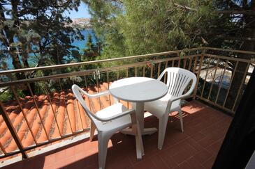 Ferienwohnung bietet Platz für 7 Gäste. Die Betten sind in Schlafzimmern, die es 3 gibt, und in Esszimmer, innerhalb einer Gesamtfläche von 67m2, angeordnet. Die Gäste haben einen eigenen Balkon zur Verfügung, auf der sie in warmen Sommernächten genießen können. Das Apartment bietet Meerblick. Es ist erlaubt, Speisen auf dem Gemeinschafts-Grill vorzubereiten. Durch den Flur der gebuchten Unterkunftseinheit gehen auch andere Gäste oder Vermieter.