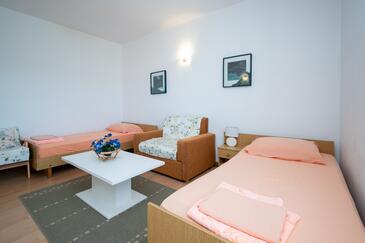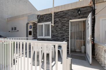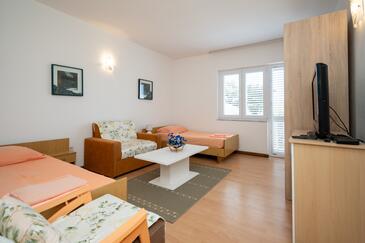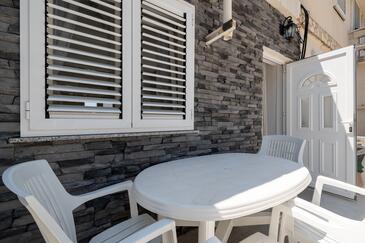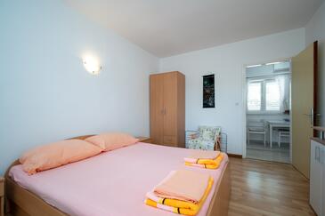 Studio bietet Platz für 4 Gäste. Die Betten sind in Schlafzimmern, die es 2 gibt, innerhalb einer Gesamtfläche von 42m2, angeordnet. Die Gäste haben eine eigene Terrasse zur Verfügung, auf der sie in warmen Sommernächten genießen können. Es ist erlaubt, Speisen auf dem Gemeinschafts-Grill vorzubereiten.