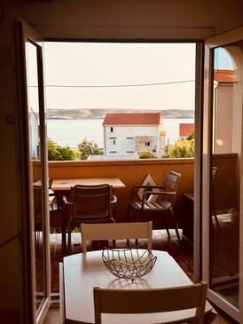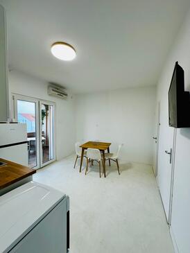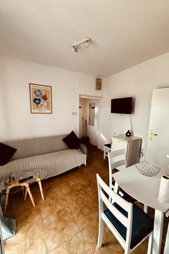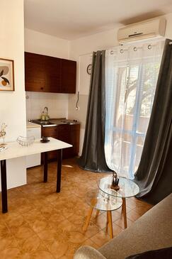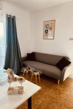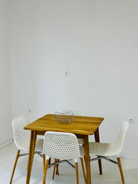 Ferienwohnung bietet Platz für 5 Gäste. Die Betten sind in Schlafzimmern, die es 2 gibt, und in Wohnzimmer, innerhalb einer Gesamtfläche von 58m2, angeordnet. Die Gäste haben eine eigene Terrasse zur Verfügung, auf der sie in warmen Sommernächten genießen können. Das Apartment bietet Meerblick. Es ist erlaubt, Speisen auf dem Gemeinschafts-Grill vorzubereiten.