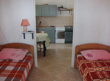 Ferienwohnung bietet Platz für 4 Gäste. Die Betten sind in Schlafzimmern, die es 2 gibt, innerhalb einer Gesamtfläche von 33m2, angeordnet. Die Gäste haben eine eigene Terrasse zur Verfügung, auf der sie in warmen Sommernächten genießen können. Es ist erlaubt, Speisen auf dem Gemeinschafts-Grill vorzubereiten. In der Unterkunftseinheit besteht die Möglichkeit des Mitbringens von Haustieren gegen Aufpreis.