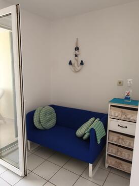 Ferienwohnung bietet Platz für 4 Gäste. Die Betten sind in Schlafzimmern, die es 2 gibt, innerhalb einer Gesamtfläche von 40m2, angeordnet. Die Gäste haben eine eigene Terrasse zur Verfügung, auf der sie in warmen Sommernächten genießen können. Das Apartment bietet Meerblick. Es ist erlaubt, Speisen auf dem Gemeinschafts-Grill vorzubereiten. Durch die Terrasse der gebuchten Unterkunftseinheit gehen auch andere Gäste oder Vermieter. Unterkunftseinheit hat Räume, die von dem Rest der Einheit abgetrennt werden.