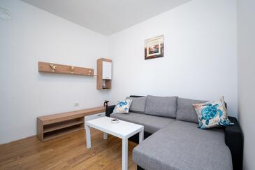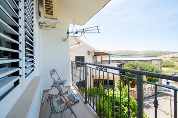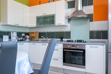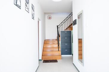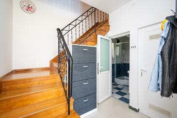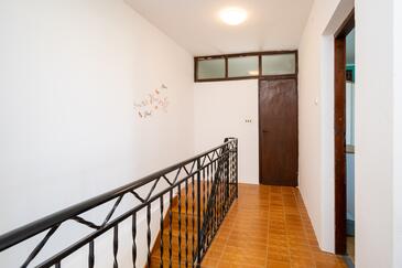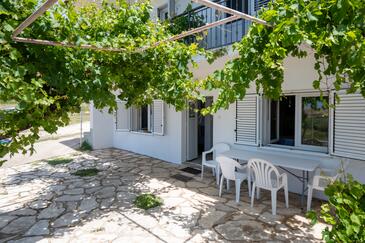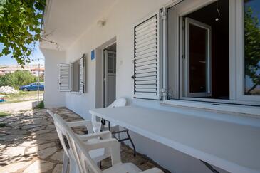 Haus bietet Platz für 6 Gäste. Die Betten sind in Schlafzimmern, die es 3 gibt, innerhalb einer Gesamtfläche von 69m2, angeordnet. Die Gäste haben eine eigene Terrasse zur Verfügung, auf der sie in warmen Sommernächten genießen können. Das Haus bietet Meerblick. Es ist erlaubt, Speisen auf dem Gemeinschafts-Grill vorzubereiten.